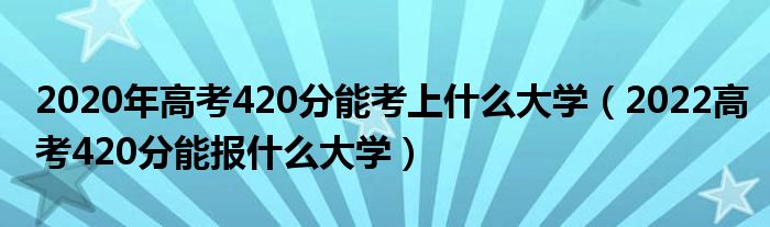 大家好,小高來為大家解答以上問題。2020年高考420分能考上什么大學(xué),2022高考420分能報(bào)什么大學(xué)很多人還不知道,現(xiàn)在讓我們一起來看看吧!