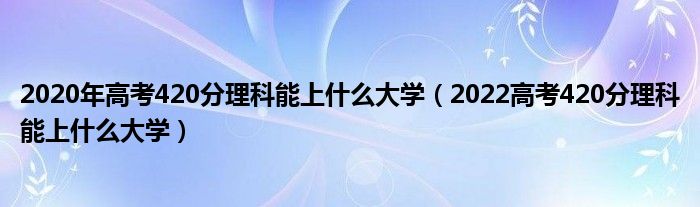 大家好,小高來為大家解答以上問題。2020年高考420分理科能上什么大學(xué),2022高考420分理科能上什么大學(xué)很多人還不知道,現(xiàn)在讓我們一起來看看吧!