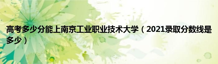 大家好,小高來(lái)為大家解答以上問(wèn)題。高考多少分能上南京工業(yè)職業(yè)技術(shù)大學(xué),2021錄取分?jǐn)?shù)線是多少很多人還不知道,現(xiàn)在讓我們一起來(lái)看看吧!