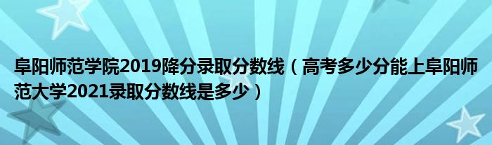 大家好,小高來為大家解答以上問題。阜陽師范學院2019降分錄取分數(shù)線,高考多少分能上阜陽師范大學2021錄取分數(shù)線是多少很多人還不知道,現(xiàn)在讓我們一起來看看吧!