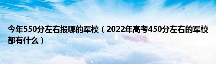 大家好,小高來(lái)為大家解答以上問(wèn)題。今年550分左右報(bào)哪的軍校,2022年高考450分左右的軍校都有什么很多人還不知道,現(xiàn)在讓我們一起來(lái)看看吧!