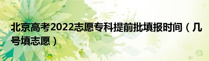大家好,小高來(lái)為大家解答以上問(wèn)題。北京高考2022志愿專科提前批填報(bào)時(shí)間,幾號(hào)填志愿很多人還不知道,現(xiàn)在讓我們一起來(lái)看看吧!