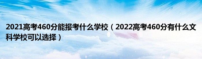 大家好,小高來為大家解答以上問題。2021高考460分能報考什么學(xué)校,2022高考460分有什么文科學(xué)??梢赃x擇很多人還不知道,現(xiàn)在讓我們一起來看看吧!