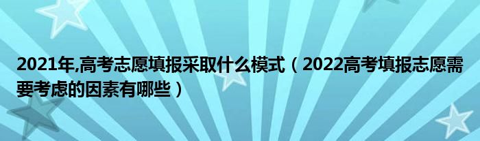 大家好,小高來為大家解答以上問題。2021年,高考志愿填報(bào)采取什么模式,2022高考填報(bào)志愿需要考慮的因素有哪些很多人還不知道,現(xiàn)在讓我們一起來看看吧!