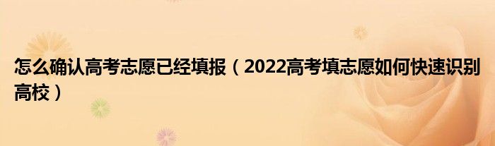 大家好,小高來為大家解答以上問題。怎么確認高考志愿已經(jīng)填報,2022高考填志愿如何快速識別高校很多人還不知道,現(xiàn)在讓我們一起來看看吧!