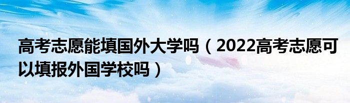 大家好,小高來(lái)為大家解答以上問(wèn)題。高考志愿能填國(guó)外大學(xué)嗎,2022高考志愿可以填報(bào)外國(guó)學(xué)校嗎很多人還不知道,現(xiàn)在讓我們一起來(lái)看看吧!
