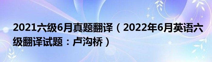 一、2022年6月英語六級翻譯試題:盧溝橋