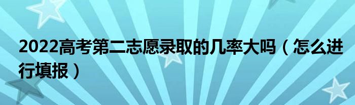 大家好,小高來為大家解答以上問題。2022高考第二志愿錄取的幾率大嗎,怎么進行填報很多人還不知道,現(xiàn)在讓我們一起來看看吧!