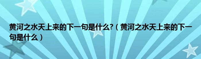 大家好,小高來為大家解答以上問題。黃河之水天上來的下一句是什么?,黃河之水天上來的下一句是什么很多人還不知道,現(xiàn)在讓我們一起來看看吧!