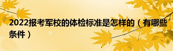 大家好,小高來為大家解答以上問題。2022報考軍校的體檢標(biāo)準(zhǔn)是怎樣的,有哪些條件很多人還不知道,現(xiàn)在讓我們一起來看看吧!
