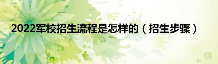大家好,小高來為大家解答以上問題。2022軍校招生流程是怎樣的,招生步驟很多人還不知道,現(xiàn)在讓我們一起來看看吧!