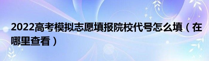 大家好,小高來為大家解答以上問題。2022高考模擬志愿填報(bào)院校代號怎么填,在哪里查看很多人還不知道,現(xiàn)在讓我們一起來看看吧!