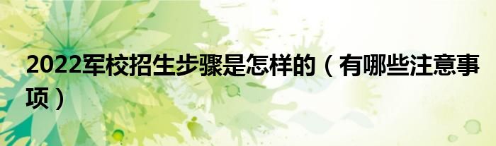 大家好,小高來為大家解答以上問題。2022軍校招生步驟是怎樣的,有哪些注意事項很多人還不知道,現(xiàn)在讓我們一起來看看吧!