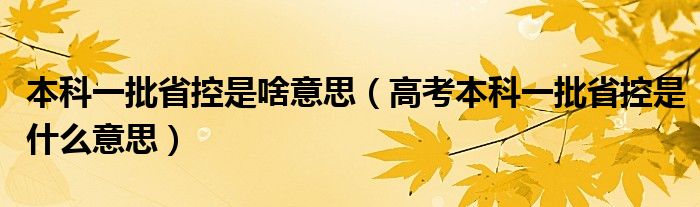 大家好,小高來為大家解答以上問題。本科一批省控是啥意思,高考本科一批省控是什么意思很多人還不知道,現(xiàn)在讓我們一起來看看吧!