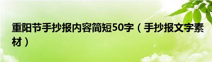 大家好,小高來為大家解答以上問題。重陽節(jié)手抄報內(nèi)容簡短50字,手抄報文字素材很多人還不知道,現(xiàn)在讓我們一起來看看吧!