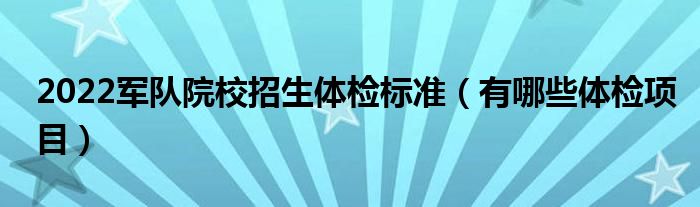 大家好,小高來為大家解答以上問題。2022軍隊(duì)院校招生體檢標(biāo)準(zhǔn),有哪些體檢項(xiàng)目很多人還不知道,現(xiàn)在讓我們一起來看看吧!