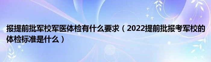 大家好,小高來為大家解答以上問題。報提前批軍校軍醫(yī)體檢有什么要求,2022提前批報考軍校的體檢標準是什么很多人還不知道,現(xiàn)在讓我們一起來看看吧!
