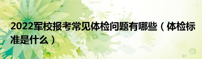 大家好,小高來為大家解答以上問題。2022軍校報考常見體檢問題有哪些,體檢標(biāo)準(zhǔn)是什么很多人還不知道,現(xiàn)在讓我們一起來看看吧!
