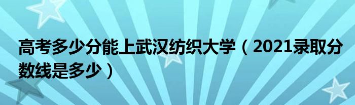 大家好,小高來為大家解答以上問題。高考多少分能上武漢紡織大學,2021錄取分數(shù)線是多少很多人還不知道,現(xiàn)在讓我們一起來看看吧!