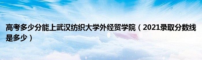 大家好,小高來為大家解答以上問題。高考多少分能上武漢紡織大學(xué)外經(jīng)貿(mào)學(xué)院,2021錄取分?jǐn)?shù)線是多少很多人還不知道,現(xiàn)在讓我們一起來看看吧!