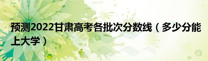 大家好,小高來為大家解答以上問題。預測2022甘肅高考各批次分數(shù)線,多少分能上大學很多人還不知道,現(xiàn)在讓我們一起來看看吧!