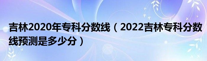 大家好,小高來為大家解答以上問題。吉林2020年??品?jǐn)?shù)線,2022吉林??品?jǐn)?shù)線預(yù)測是多少分很多人還不知道,現(xiàn)在讓我們一起來看看吧!