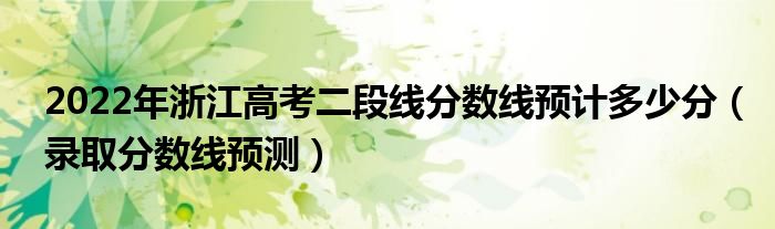 大家好,小高來為大家解答以上問題。2022年浙江高考二段線分?jǐn)?shù)線預(yù)計(jì)多少分,錄取分?jǐn)?shù)線預(yù)測(cè)很多人還不知道,現(xiàn)在讓我們一起來看看吧!