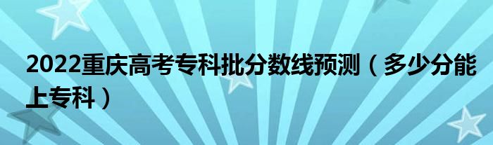 大家好,小高來為大家解答以上問題。2022重慶高考??婆?jǐn)?shù)線預(yù)測,多少分能上專科很多人還不知道,現(xiàn)在讓我們一起來看看吧!
