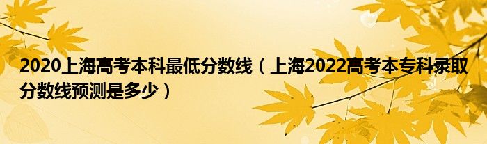 大家好,小高來為大家解答以上問題。2020上海高考本科最低分數(shù)線,上海2022高考本專科錄取分數(shù)線預(yù)測是多少很多人還不知道,現(xiàn)在讓我們一起來看看吧!