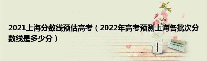 大家好,小高來(lái)為大家解答以上問(wèn)題。2021上海分?jǐn)?shù)線預(yù)估高考,2022年高考預(yù)測(cè)上海各批次分?jǐn)?shù)線是多少分很多人還不知道,現(xiàn)在讓我們一起來(lái)看看吧!