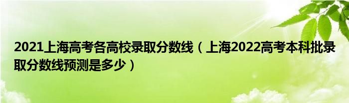 大家好,小高來為大家解答以上問題。2021上海高考各高校錄取分?jǐn)?shù)線,上海2022高考本科批錄取分?jǐn)?shù)線預(yù)測是多少很多人還不知道,現(xiàn)在讓我們一起來看看吧!