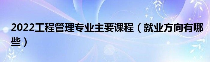 大家好,小高來(lái)為大家解答以上問題。2022工程管理專業(yè)主要課程,就業(yè)方向有哪些很多人還不知道,現(xiàn)在讓我們一起來(lái)看看吧!