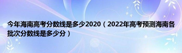 大家好,小高來(lái)為大家解答以上問(wèn)題。今年海南高考分?jǐn)?shù)線是多少2020,2022年高考預(yù)測(cè)海南各批次分?jǐn)?shù)線是多少分很多人還不知道,現(xiàn)在讓我們一起來(lái)看看吧!