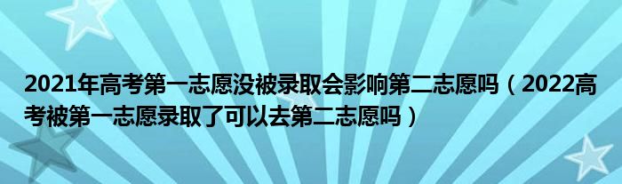 大家好,小高來為大家解答以上問題。2021年高考第一志愿沒被錄取會影響第二志愿嗎,2022高考被第一志愿錄取了可以去第二志愿嗎很多人還不知道,現(xiàn)在讓我們一起來看看吧!