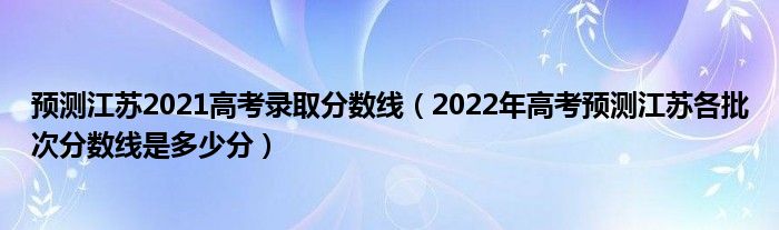 大家好,小高來為大家解答以上問題。預(yù)測江蘇2021高考錄取分?jǐn)?shù)線,2022年高考預(yù)測江蘇各批次分?jǐn)?shù)線是多少分很多人還不知道,現(xiàn)在讓我們一起來看看吧!