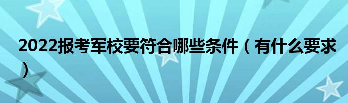 大家好,小高來(lái)為大家解答以上問(wèn)題。2022報(bào)考軍校要符合哪些條件,有什么要求很多人還不知道,現(xiàn)在讓我們一起來(lái)看看吧!