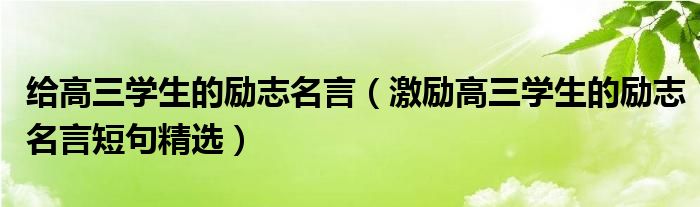 大家好,小高來為大家解答以上問題。給高三學(xué)生的勵(lì)志名言,激勵(lì)高三學(xué)生的勵(lì)志名言短句精選很多人還不知道,現(xiàn)在讓我們一起來看看吧!