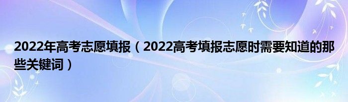 大家好,小高來為大家解答以上問題。2022年高考志愿填報,2022高考填報志愿時需要知道的那些關(guān)鍵詞很多人還不知道,現(xiàn)在讓我們一起來看看吧!