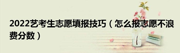 大家好,小高來為大家解答以上問題。2022藝考生志愿填報(bào)技巧,怎么報(bào)志愿不浪費(fèi)分?jǐn)?shù)很多人還不知道,現(xiàn)在讓我們一起來看看吧!