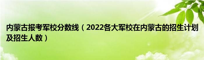 大家好,小高來(lái)為大家解答以上問(wèn)題。內(nèi)蒙古報(bào)考軍校分?jǐn)?shù)線,2022各大軍校在內(nèi)蒙古的招生計(jì)劃及招生人數(shù)很多人還不知道,現(xiàn)在讓我們一起來(lái)看看吧!