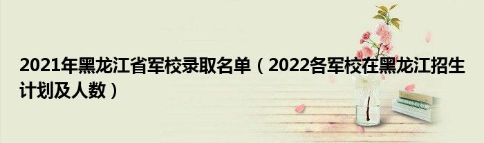 大家好,小高來為大家解答以上問題。2021年黑龍江省軍校錄取名單,2022各軍校在黑龍江招生計劃及人數(shù)很多人還不知道,現(xiàn)在讓我們一起來看看吧!