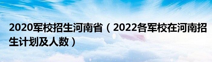 大家好,小高來為大家解答以上問題。2020軍校招生河南省,2022各軍校在河南招生計(jì)劃及人數(shù)很多人還不知道,現(xiàn)在讓我們一起來看看吧!