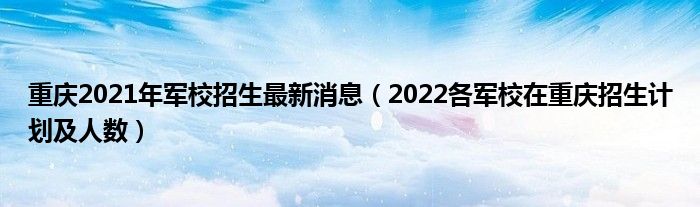 大家好,小高來為大家解答以上問題。重慶2021年軍校招生最新消息,2022各軍校在重慶招生計劃及人數(shù)很多人還不知道,現(xiàn)在讓我們一起來看看吧!