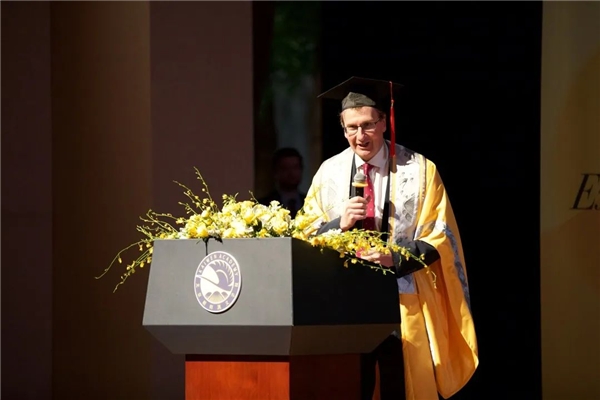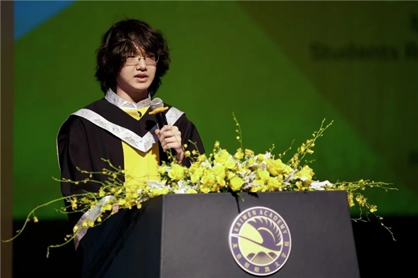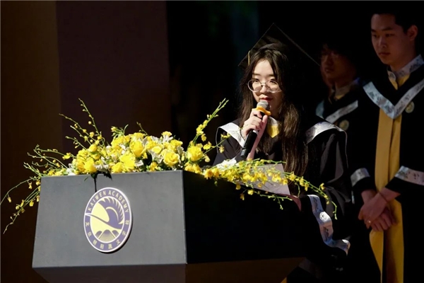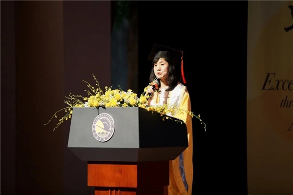 教育帶給人的影響是非常深遠(yuǎn)的,是超越知識和能力的。今天,我選擇凱文品格“智慧”作為我畢業(yè)典禮演講的主題。因為智慧不等于智商、不等于知識、不等于經(jīng)驗,希望你們始終好奇,始終學(xué)習(xí),從而在面對未來的挑戰(zhàn)中,解決問題、打破規(guī)則,在創(chuàng)新中發(fā)展。”