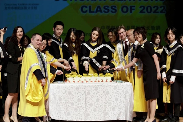 Andrew Leale校長為畢業(yè)生們頒發(fā)畢業(yè)證書,徐濤校長為畢業(yè)生們進(jìn)行撥穗,趙鈺蓮校長和James校長邀請同學(xué)們一起享用畢業(yè)蛋糕,宣告他們從朝陽凱文正式畢業(yè)。