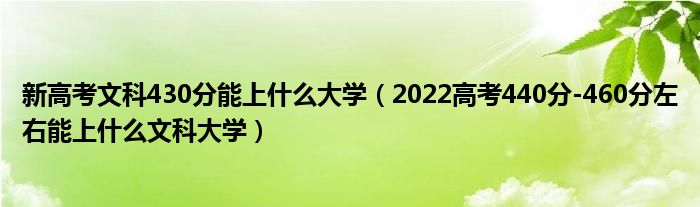 大家好,小高來為大家解答以上問題。新高考文科430分能上什么大學(xué),2022高考440分-460分左右能上什么文科大學(xué)很多人還不知道,現(xiàn)在讓我們一起來看看吧!