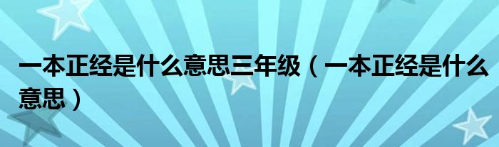 大家好,小高來為大家解答以上問題。一本正經(jīng)是什么意思三年級,一本正經(jīng)是什么意思很多人還不知道,現(xiàn)在讓我們一起來看看吧!