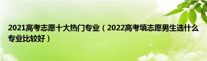 大家好,小高來為大家解答以上問題。2021高考志愿十大熱門專業(yè),2022高考填志愿男生選什么專業(yè)比較好很多人還不知道,現(xiàn)在讓我們一起來看看吧!