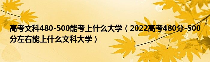 大家好,小高來為大家解答以上問題。高考文科480-500能考上什么大學(xué),2022高考480分-500分左右能上什么文科大學(xué)很多人還不知道,現(xiàn)在讓我們一起來看看吧!