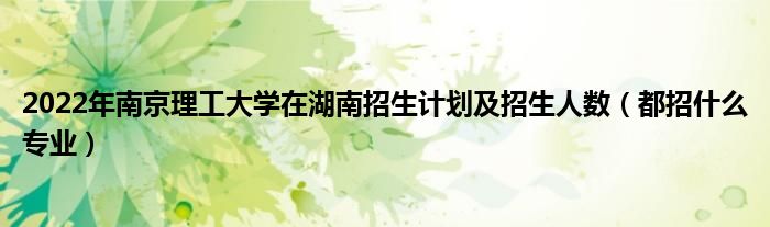 大家好,小高來為大家解答以上問題。2022年南京理工大學(xué)在湖南招生計劃及招生人數(shù),都招什么專業(yè)很多人還不知道,現(xiàn)在讓我們一起來看看吧!